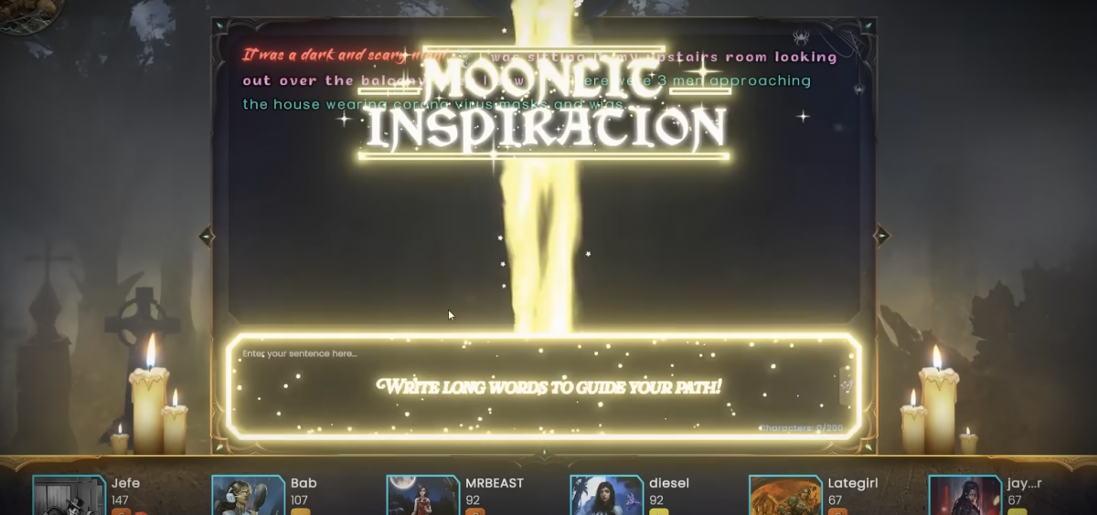 Players face the Evil Fog, which disables spellcheck during the Writing Phase. To earn 25 bonus points, players must craft sentences with 75 or more characters.